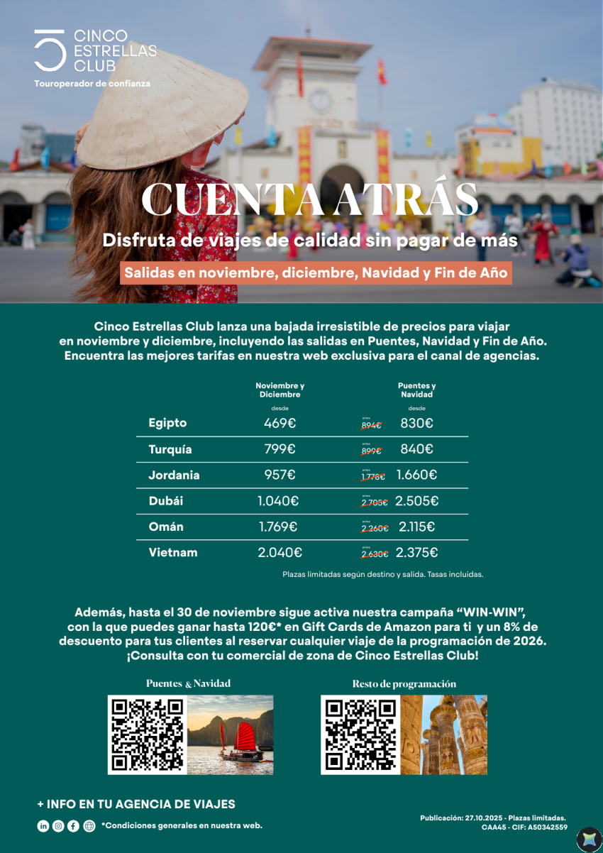 Cuenta Atrás! dsd 469€ Nov-Dic y Puentes y Navidad y Fin dsd 830€ precios más bajos